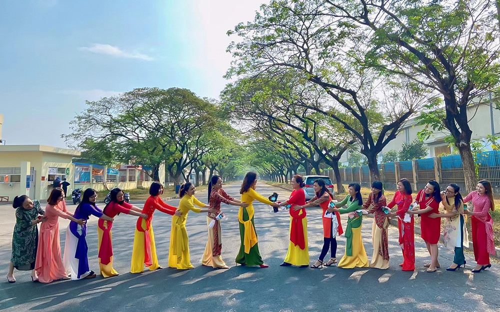 2021年3月8日,第111個三八國際婦女節(jié)來臨之際,越南鳳凰畫材的女同胞們歡聚一堂,共同度過屬于她們自己的節(jié)日。越南鳳凰畫材工會為每一位女性員工準備了精美的禮物,并組織女員工們身穿越南民族特色服裝——奧黛,在工作之余展現越南姑娘特有的美,姑娘們身著五顏六色的奧黛服裝,猶如一片片流動的七彩祥云,成為越南鳳凰畫材一道最美的風景線。